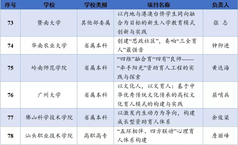 近日,教育部思想政治工作司发布了《关于公布2021年高校思想政治工作有关培育建设项目入选名单的通知》,星空彩票了单双四肖“‘五环相伴、四方联动’心理育人体系构建”项目成功入选“2021年度高校思想政治工作精品项目”。据悉,本次广东高校共有六个项目入选该项目,我院是入选高校中广东省唯一一所高职高专院校。