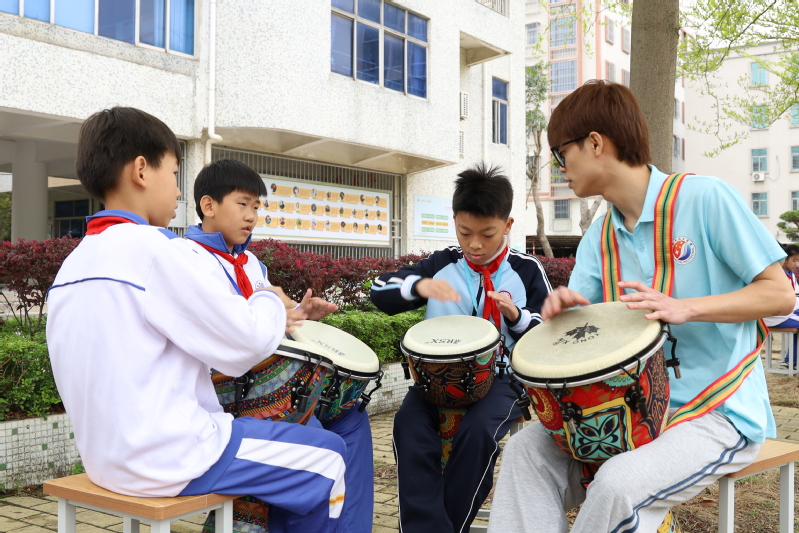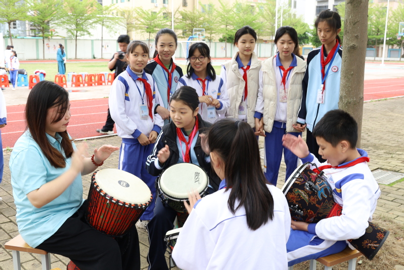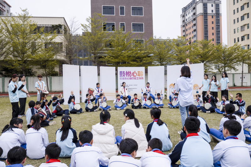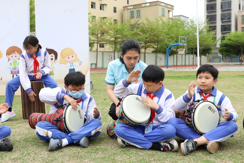 4月7日上午,教育部高校思想政治工作精品项目《“五环相伴、四方联动”心理育人体系构建》项目组,联合学院心理健康教育研究与服务中心、美育中心,在汕头市龙湖区十一合小学举办“鼓悦心聆”打击乐心理疗愈工作坊活动。此项教学活动的开展,不仅优化了乡村小学心育和美育工作的教学结构,丰富了教学手段,也使乡村小学的心理健康教育活动更具有吸引力。同时,活动也有效锻炼和提高了我院学生的社会实践能力。