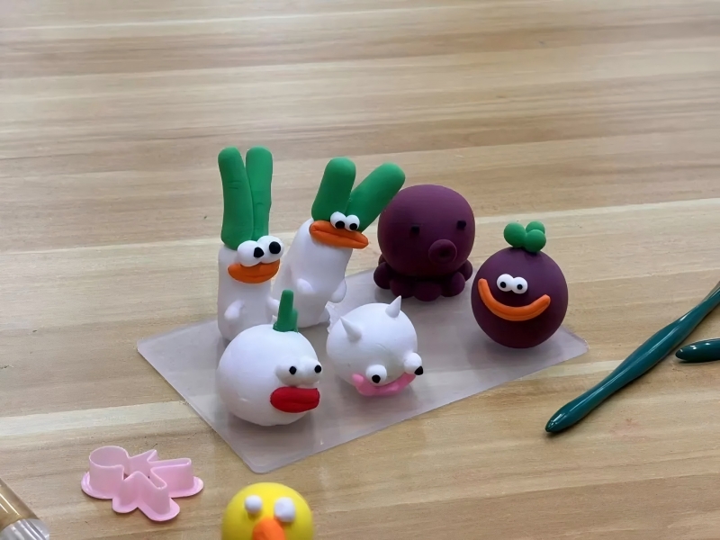 除了粘土玩偶的创作,本次活动还涵盖了丰富多样的黏土体验内容。超轻黏土基础制作,让同学们熟悉了黏土特性、工具使用方法以及基本造型技巧;创意黏土造型环节,同学们发挥无限想象力,将基础形状组合成动物、植物、人物等更具创意的作品,培养了创造力和审美能力;黏土的情绪表达,引导同学们用黏土作品表达内心的情感、想法,提升了动手能力和审美情趣。