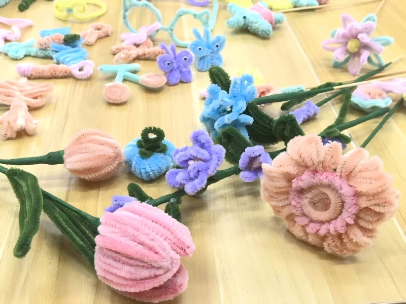 在创意制作环节,同学们根据自己的喜好和创意,选择不同颜色的扭扭棒,开始自由创作。工作人员在现场悉心指导,解答同学们在制作过程中遇到的问题。大家充分发挥想象力,将扭扭棒变成了一朵朵娇艳的花朵、一只只可爱的动物、一件件精美的饰品……在创作过程中,同学们积极分享自己的想法和感受,互相交流和启发,现场气氛热烈而温馨。