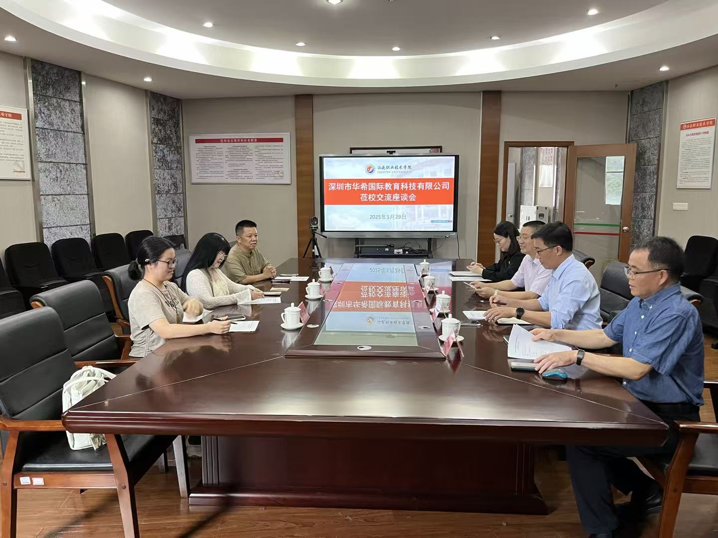 2025年5月29日,深圳市华希国际教育科技有限公司莅校开展座谈,洽谈对外交流合作有关事项。