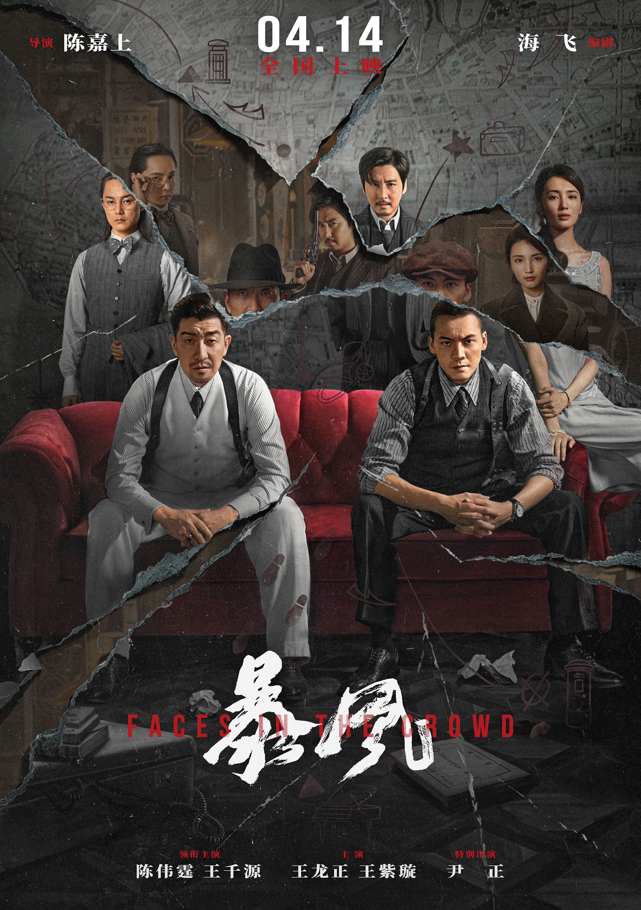 《暴风》是由中国珠江电影集团领衔出品,陈嘉上执导,海飞编剧,陈伟霆、王千源领衔主演,王龙正、王紫璇主演,尹正特别出演的动作悬疑电影,于2023年4月14日在中国内地上映。该片主要讲述20世纪30年代,看似相安无事的汕头街巷,实则角力暗藏。身为革命者的王历文(王千源饰)参加起义流落汕头时,陈家栋(陈伟霆饰)舍命相救,两人结成兄弟交情。王历文被捕后背叛了上级,在武汉设局枪杀老路等同志。他随后来到汕头为了阻断仅存的南方秘密交通线,再次与陈家栋重逢,并向他抛出橄榄枝。但“道不同不相为谋”的命运让兄弟两人出现了极限拉扯,并上演了一场“猜卧底、斗感情,判对错、追信仰”的殊死博弈。2023年11月1日举办的第19届中美电影节上,电影《暴风》荣获年度十大金天使电影奖,制片人刘佳菈获年度最佳新晋制片人奖。同年12月,在第4届新时代国际电影节・金扬花奖评选中,陈伟霆获得新时代最佳动作演员提名。