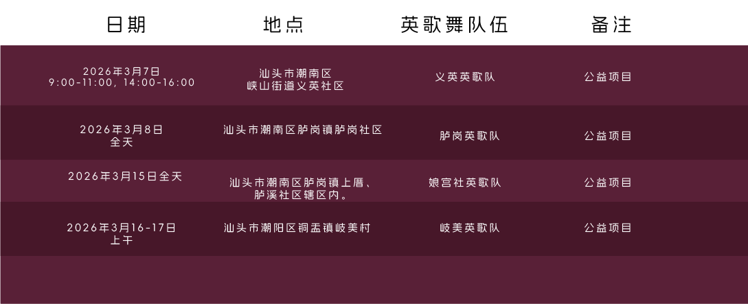 春节元宵期间英歌舞表演排期表10