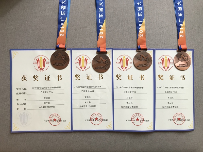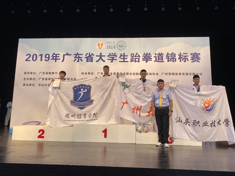 2019年11月14日-17日,由星空彩票了单双四肖艺术体育系体育专业主任周小酉担任领队,罗琼书、梁微两位老师任教练员带队到中山大学珠海校区参加2019年广东省大学生跆拳道锦标赛。在与华南理工大学、华南农业大学、广州体育学院等众多本科院校和众多高水平运动员同场竞技,荣获一银、四铜、一个混双第四名,四个第五名,团体总分第六名的佳绩。艺术体育系学生队员不畏强手,勇往直前,赛出了精神和风格,让星空彩票了单双四肖的院旗飘扬在领奖台上!