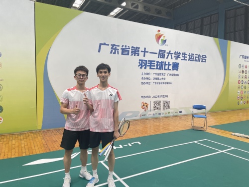 在学院领导的关心与各学系的支持和帮助下,6月9日下午,我院运动健儿在广东省第十一届大学生运动会上再夺佳绩。此次大运会丙组(高职组)羽毛球项目比赛中,由学院体育运动委员会秘书长周小酉老师领队,在教练员郑遐老师的用心指导下,机电工程系余泽龙和经济管理系余冰杰组合的男子双打荣获铜牌(第三名)。
