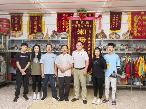 8月20日,由艺术体育系党总支书记、主任周小酉带队,吴佳珩老师与严楠老师同行前往省级“英歌传承基地”潮阳棉北后溪英歌队,拜访潮阳英歌舞省级代表性传承人、后溪英歌队队长、总教练林忠诚先生,潮阳英歌舞市级与区级代表性传承人林芳武先生,并针对我系“林忠诚英歌舞大师工作室”的筹备工作进行交流。