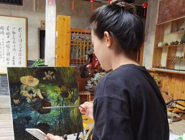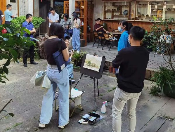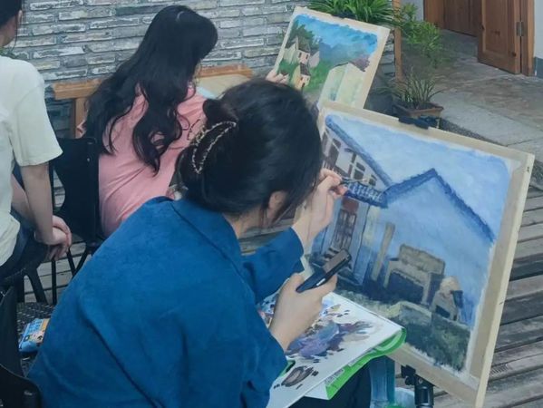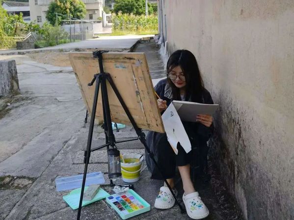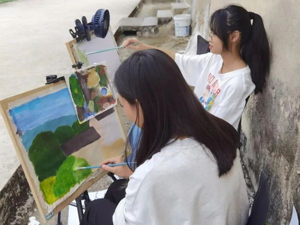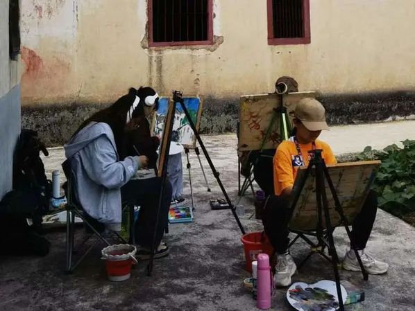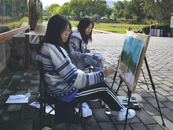 北塘村是一个古村落,古民居、古驿道上充满诗情画意,拥有丰富的红色历史资源,优美的自然环境及深厚的文化底蕴,每一幅风景都为师生们带来创作灵感,用笔墨勾勒山水景色,用色彩点缀乡土情怀。
