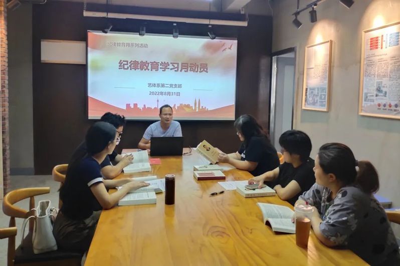 为深入学习贯彻习近平总书记在十九届中央纪委六次全会上的重要讲话精神,贯彻落实省第十三次党代会及市第十二次党代会精神,坚持不懈把全面从严治党向纵深推进,按照我院2022年纪律教育学习月活动实施方案要求,艺术体育系党总支于9月1日-20日,开展了“勇于自我革命,永葆先进纯洁”为主题的纪律教育系列活动。
