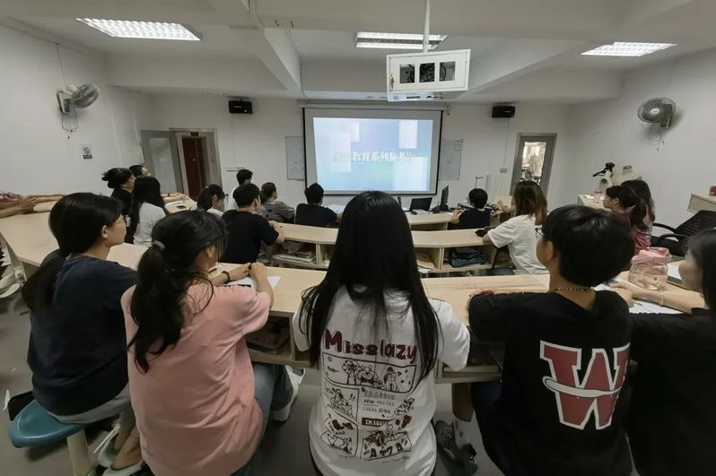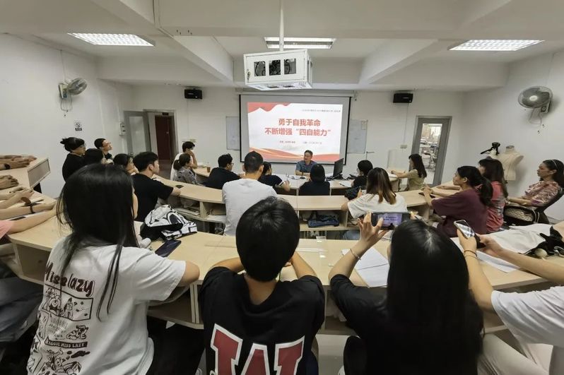 9月15日下午,学院副院长林育青在院本部第二实训楼服装设计专业阶梯教室,为艺术体育系师生党员与入党积极分子讲授题为《勇于自我革命,不断增强“四自能力”》的专题党课。林副院长带领党员师生学习《习近平谈治国理政》第四卷第21章“以伟大自我革命引领伟大社会革命”专题。