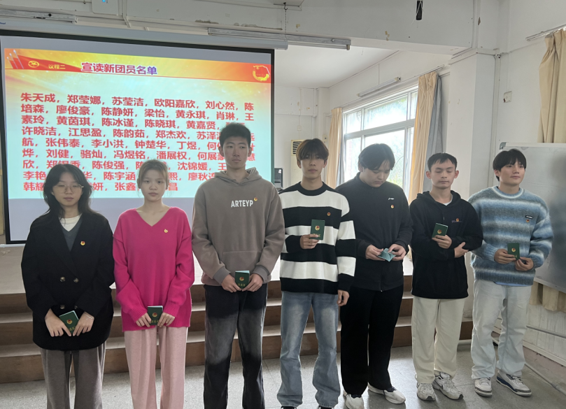 团徽是中国共青团的象征和标志,团员证是团员身份的证明。刘少斌老师为每位新团员派发了团徽和团员证,并向每一位新团员提出殷切希望和要求,希望大家以更高的标准要求自己,牢记入团初心和使命,在新时代的征程中绽放青春光彩,成为一名优秀的共青团员。