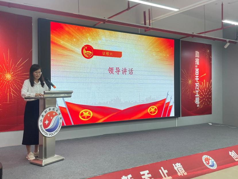 艺术设计学院学生科科长李静文讲话,她强调团员青年要坚定理想信念,提高政治素养;要强化服务意识,提升工作能力,始终牢记全心全意为同学服务的宗旨,把同学的需求作为工作的出发点和落脚点;要严格要求自己,发挥示范作用,以身作则,在学习、工作、生活等各方面树立榜样,引领广大同学共同进步。