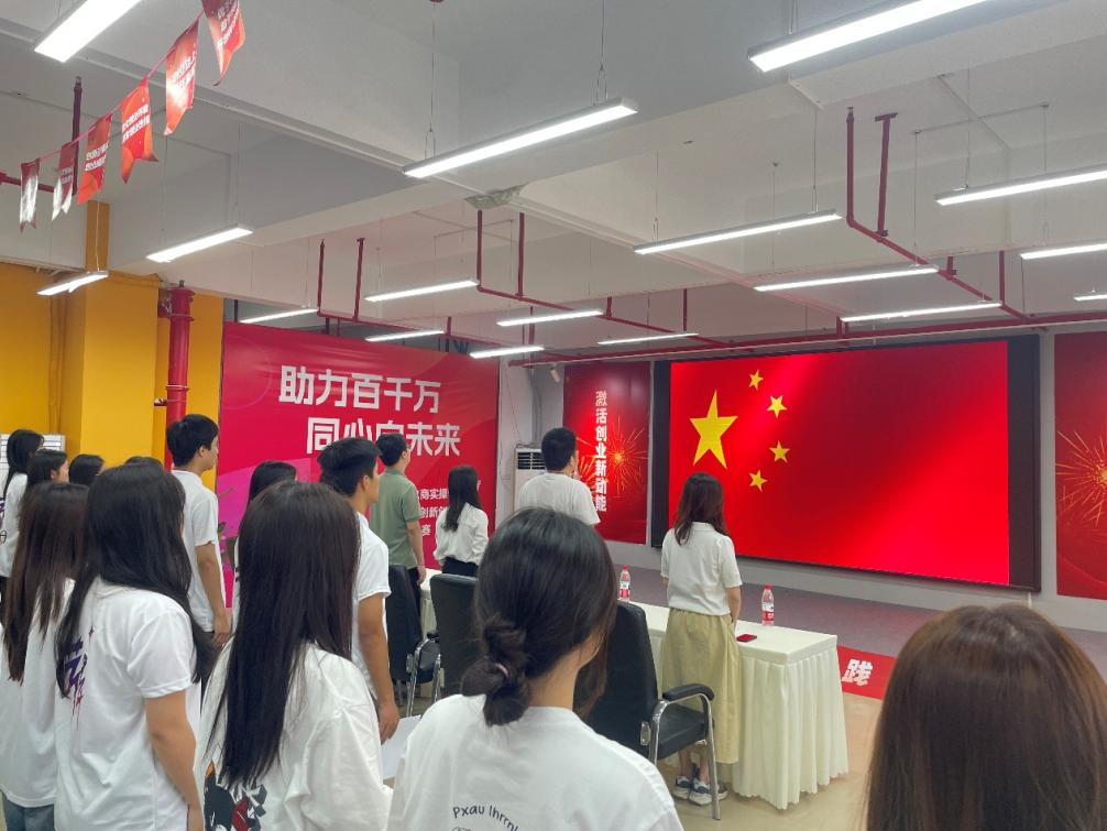 大会开始,在主持人的带领下,全体起立,奏唱国歌。