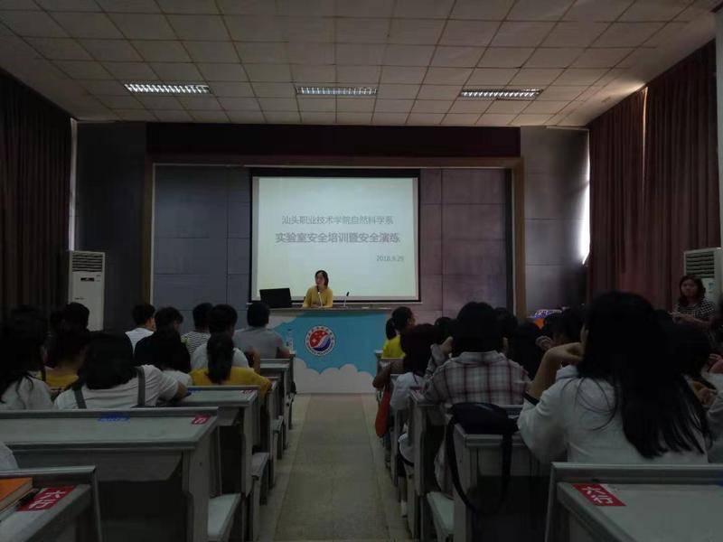根据《省教育厅关于高等学校实验室安全建设与管理暂行规定》文件指示,自然科学系实验室于2018年9月29日上午开始对2018级物理教育、化学教育、生物教育、环境工程技术、食品检测技术专业六个班共约252名新生进行实验室准入培训,并于9月29日下午在风雨操场进行了灭火等安全演练。