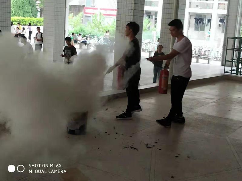 2017级物理教育专业学生卢荣燊同学主动上台讲解了灭火筒的使用并进行了灭火演练,台下新生也积极上台参与演练。经过安全培训和演练,学生在进入实验室之前便能了解实验室的各项规章制度及实验安全的基本知识,掌握了各种安全事故的应急处理方法,提高了学生实验的安全防范意识。本次安全培训和演练取得圆满的效果。