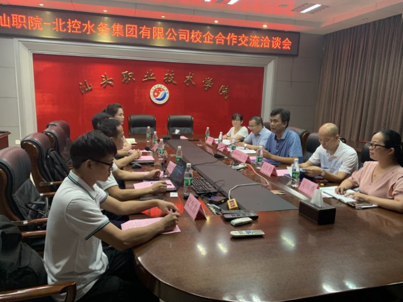 经过前期的沟通和准备,2020年9月22日下午北控水务集团有限公司代表一行莅临我院自然科学系洽谈校企合作相关事宜,校企合作交流洽谈会议在金园校区会议室召开,会议由系党总支书记、系主任张文腾主持,系副主任吴松勤,环境工程技术专业群教师代表陈壁波、田秀芳、吴瑞香出席了会议。