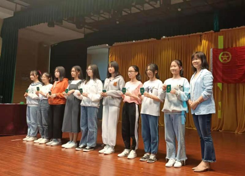 入团仪式在庄严洪亮的国歌声中拉开序幕,五位老师为45名新团员颁发了团员证、团徽。接着,由李婕副书记为新老团员领誓,新团员庄严宣誓,老团员重温了入团誓词,现场庄严神圣的氛围让每位参会团员受到了思想的洗礼与心灵的震撼,更加坚定了大家为国家、为社会、为人民服务的理想信念。