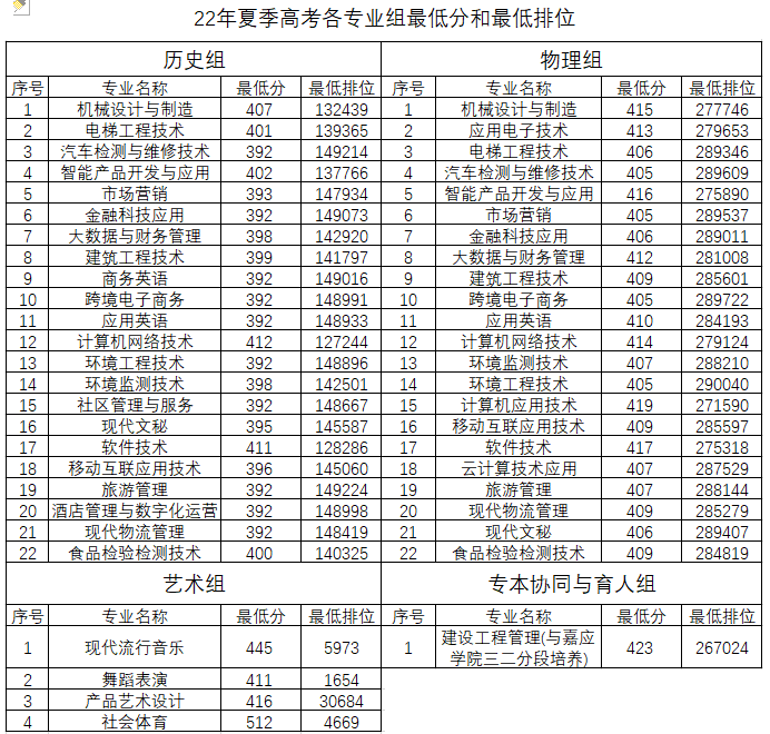 星空彩票了单双四肖2022年夏季高考各专业组最低录取分数线和最低排位