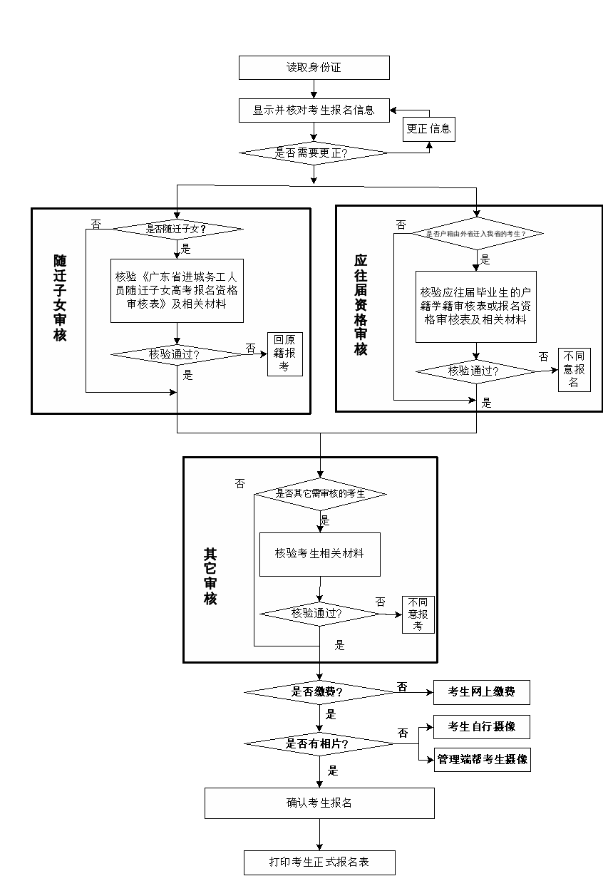 备注:1.已建立集中统一管理审核机制或“网上”电子数据比对审核机制的地市,由地市招生考试机构根据相关部门反馈的电子数据比对结果统一加盖公章认定。