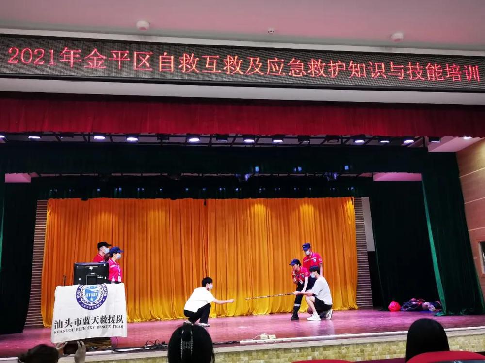 夏季到来后,各地发生了多起学生溺水事件,针对近期学生的溺水事故,做好防患于未然,汕头市蓝天救援队主讲袁老师亲自为学生科普溺水后的自救及互救知识,分别从如何正确的使用游泳器材、游泳前热身运动、游泳中的自救和互救的注意事项几个方面给学生们做详细讲解,并邀请学生上台进行实操演练,让学生有深刻的体会。同时,袁老师还为同学们现场演示如何进行心肺复苏及海姆立克法,提高了学生的应急救护知识。