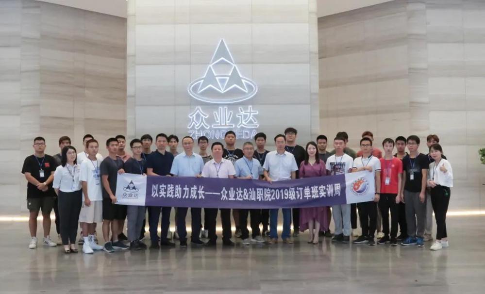 挂牌仪式上,由陈瑞钿副总经理、黄健新副处长分别致词。黄副处长指出,自订单班开班以来,众业达公司严格履行承诺,一是学生前两年在校内学习期间,多次选派技术骨干莅临我院,向学生讲授实践课程和企业文化;二是在公司内建立一个大学生校外实践教学基地,配备先进的实验实训设备,接受学生岗前培训和跟岗实习,学生从中学到职业岗位必需的技术和技巧,了解到岗位需求和发展前景。接着,在企业代表、学校师生见证下,杨松副总经理、陈明忠主任举行揭牌仪式。