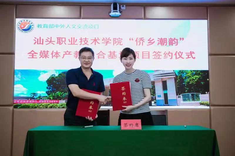 据了解,”中外人文交流全媒体产教融合”项目通过搭建独具特色的产教融合人才培养平台,“引产入校”、“引产入教”,为高校引入海量短视频制作、直播、融媒体分发等数字文创项目,推动多学科交叉会聚与多技术跨界融合,在国内培养实战型影视人才方面有着坚实的社会影响力。我院申请“侨乡潮韵中外人文交流全媒体产教融合基地”项目期间,学院领导高度重视该项目的申报和推进情况,亲自对项目的建设申报和规划提出了指导性意见。该基地将在教育部中外人文交流中心的指导下,充分共享容艺集团的行业资源和市场化项目,致力于建设符合“一带一路”战略又有鲜明地方特色的、传播潮汕文化和华侨文化的汕职院全媒体中心,促进我院人才培养以及中外人文交流合作与发展,形成具有示范引领作用的中外人文交流产教融合基地,提升学院的区域影响力,为汕头的经济和学院的发展注入新的活力。
